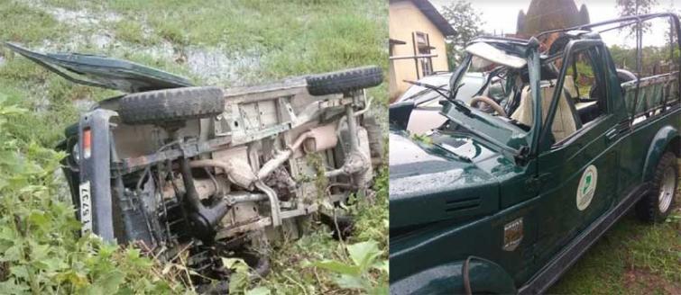 Guwahati, Aug 30 (UNI) At least four employees of Forest department of Assam were killed and two others injured in a road accident in Gaurisagar area in Sivsagar district of Assam today.