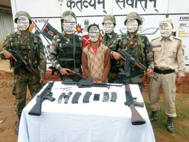 Security personnel recovered one US made M4 A2 Carbine, one Myanmar made MA MK3 rifle, a German made 9mm GSG-5 Carbine and magazines in possession from the person.