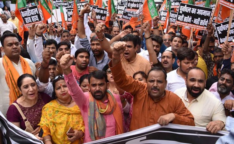 The workers were agitated over the objectionable statement made against Delhi BJP president Manoj Tiwari by Mr Kejriwal in connection with NRC.