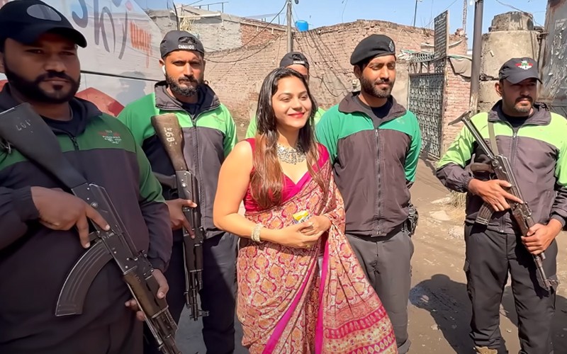 Jyoti Malhotra (C) in her vlog over her recent Pakistan trip. Photo courtesy: Screen-grab