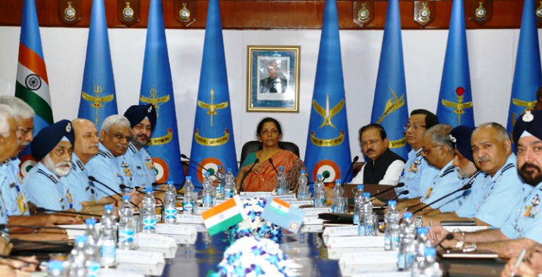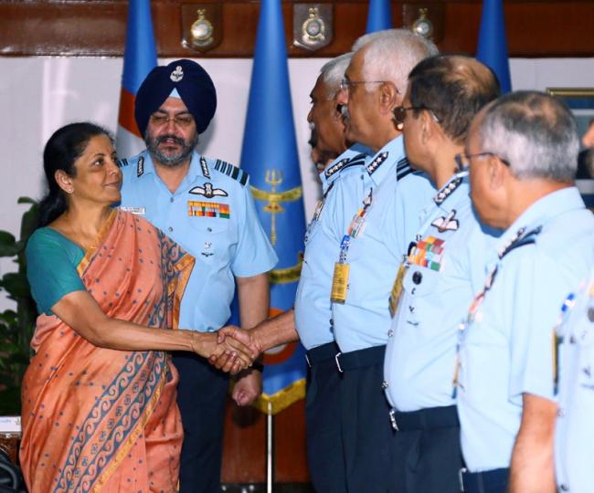 Chief of the Air Staff, Air Chief Marshal BS Dhanoa, welcomed Defence Minister Sitharaman and Minister of State- Defence, Dr Subhash Bhamre, and introduced the IAF Commanders to them.