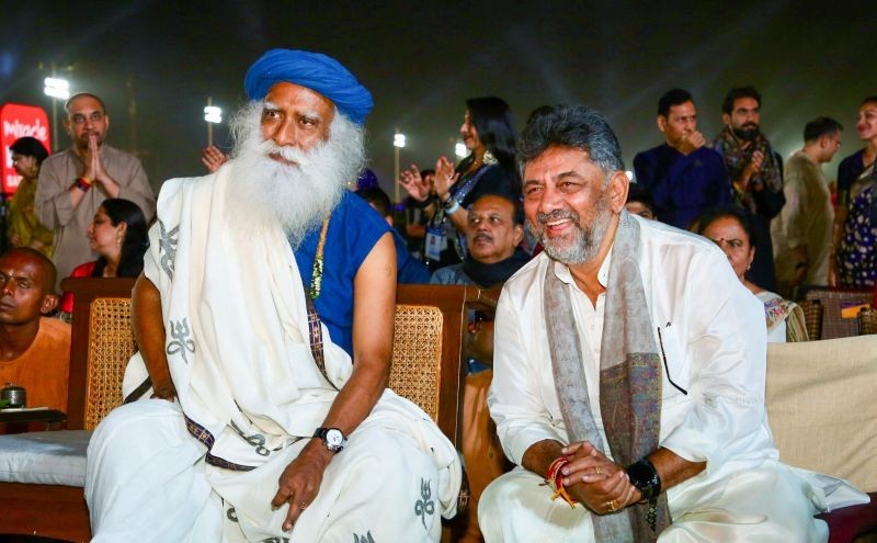 Shivakumar, a Congress strongman, posted a number of pictures on X with Sadhguru from the nightlong festival, which was held on the occasion of Maha Shivratri with musical performances and meditation.