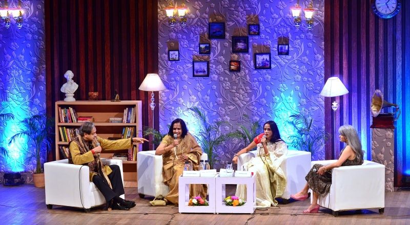 (L-R) Shashi Tharoor, Shobha Tharoor, Smita Tharoor in conversation with Nishtha Gautam. Photo: PKF Team