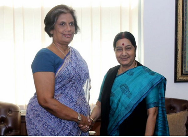 "Another old friend, from Sri Lanka. EAM @SushmaSwaraj meets former President Chandrika Kumaratunga."