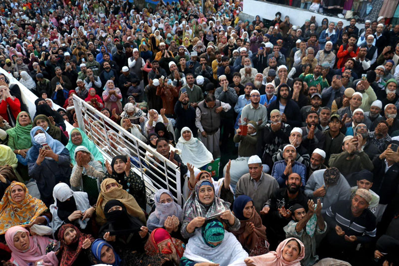 The largest gathering was observed at Asar-e-Sharief Hazratbal, housing the holy relic of the Prophet Muhammad (SAW), on the bank of Dal Lake where thousands of devotees including men, women and Children participated in night long prayers “Shab Khawani” during which special prayers were offered on Saturday.
