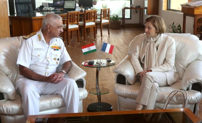 During the visit, Mrs Florence Parly interacted with Vice Admiral Girish Luthra, the Flag Officer Commanding-in-Chief, Western Naval Command.