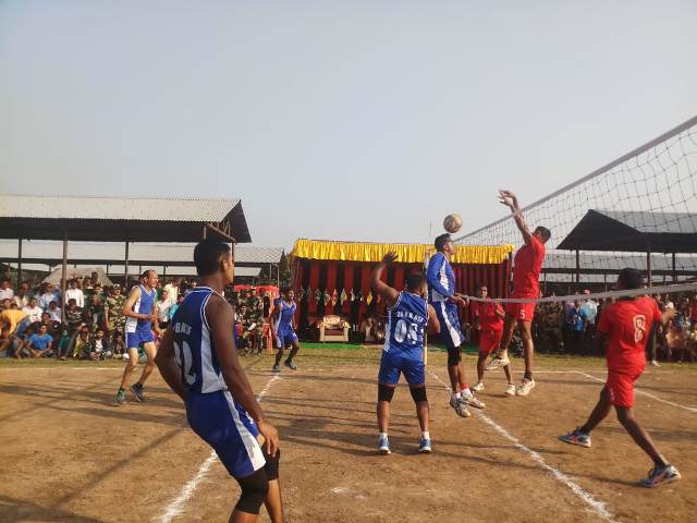 Friendly volleyball match between BSF and BGB held in Meghalaya