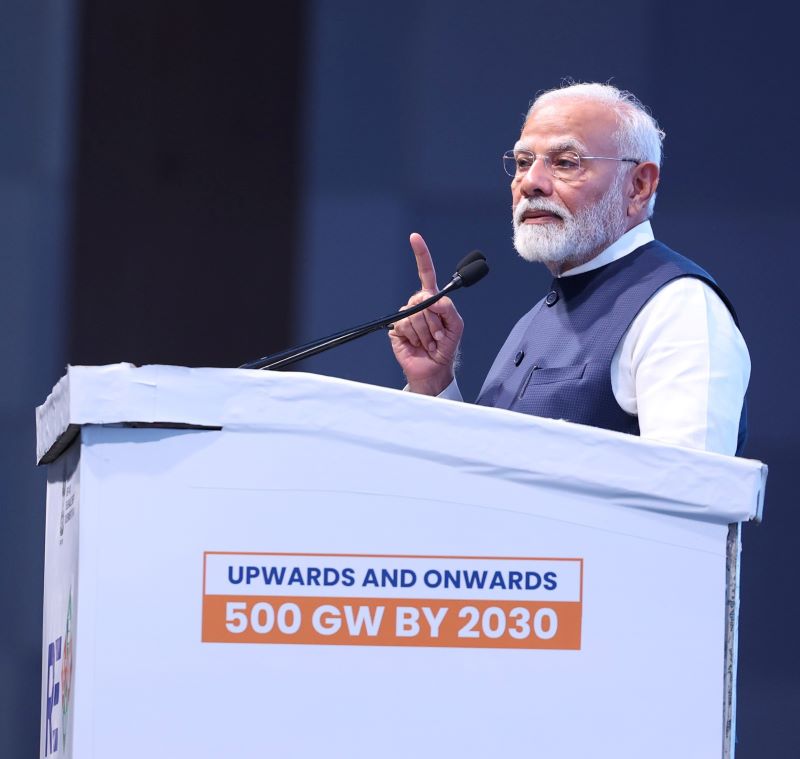 Modi outlined the nation’s goals to achieve the target of 500 GW of renewable energy by 2030 and said that the government has turned the green transition into a people’s movement.