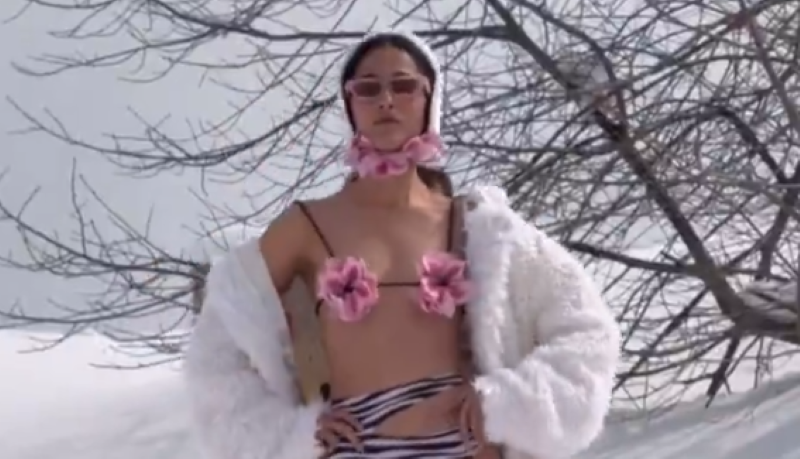 At an event held in Gulmarg, men and women were seen walking on the snowy slopes in revealing attires.