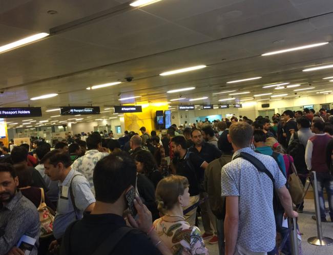 IGI airport, Delhi Immigration Hall just now #CapacityPlanningFail pic.twitter.com/V0pZyzQJjC