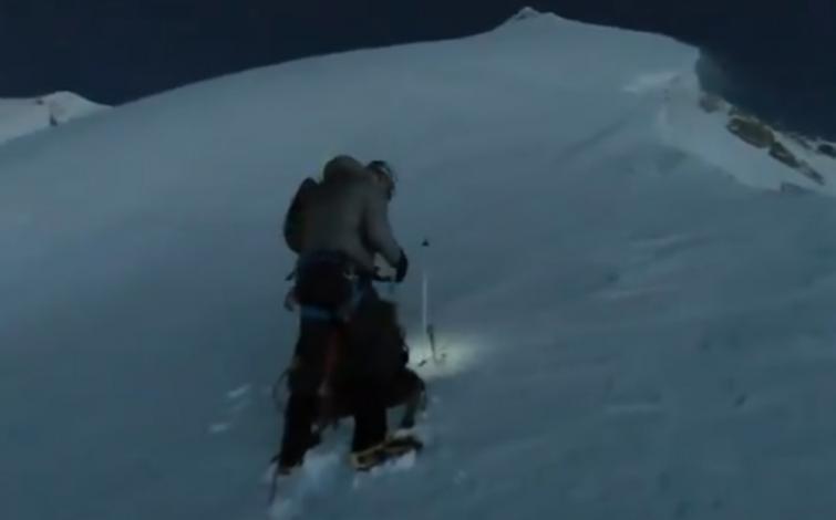 In the video people could see eight climbers roped together as they take steps up an unnamed peak.