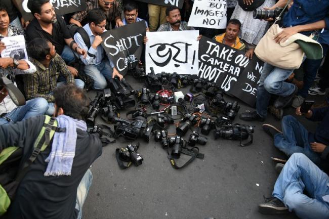 Kolkata, Apr 11 (IBNS): Days after several media personnel covering the filing of nomination papers for upcoming Panchayat polls in West Bengal were brutally beaten up allegedly by state's ruling Trinamool Congress (TMC)'s activists at different locations across the state, Kolkata-based journalists staged protest and held a 'silent' march at city's downtown Esplanade area on Wednesday evening.