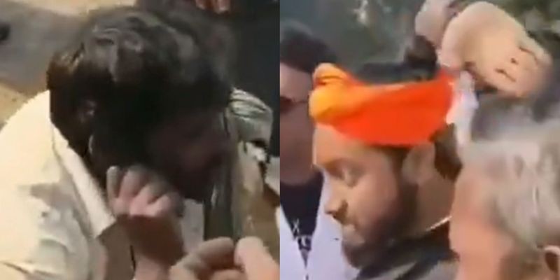 One of the attackers, seen wearing a saffron headband, was captured assaulting the vendors, triggering sharp criticism online.