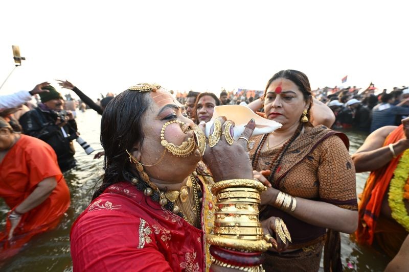 Millions of pilgrims thronged the meeting point of three rivers named Triveni Sangam in north India's Prayagraj city for the third Amrit Snan (an auspicious bathing ritual followed by Hindus) of the ongoing Maha Kumbh Mela or Great Pitcher Festival on Monday.