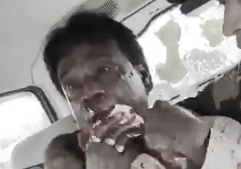Blood-smeared face of Khagen Murmu after the attack. Photo: Screen-grab