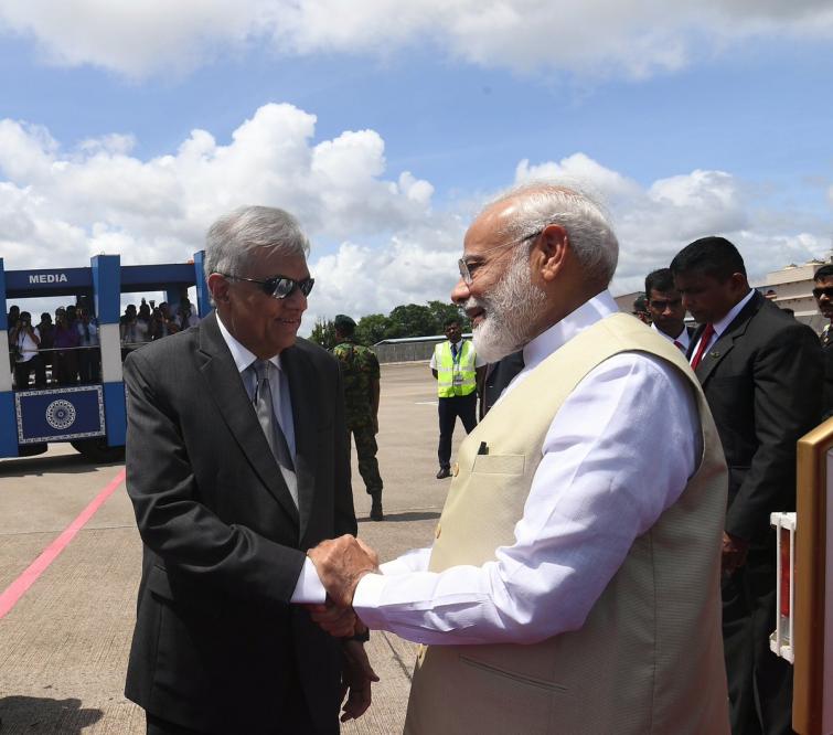 On arrival, Modi was received by his Lankan counterpart Ranil Wickremesinghe at the Bandaranaike International Airport.