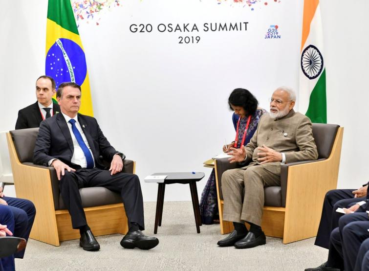 "Deepening the close & multifaceted strategic partnership PM @narendramodi & Brazilian President @jairbolsonaro held wide-ranging discussions on bilateral relationship, specially cooperation in trade & investment, agriculture & bio-fuels in the context of climate change," Kumar tweeted.