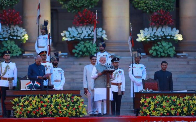 Modi was among 58 ministers who took oath at the Rashtrapati Bhavan amid a large number of Indian and foreign guests. The swearing-in ceremony was administered by President Ram Nath Kovind.