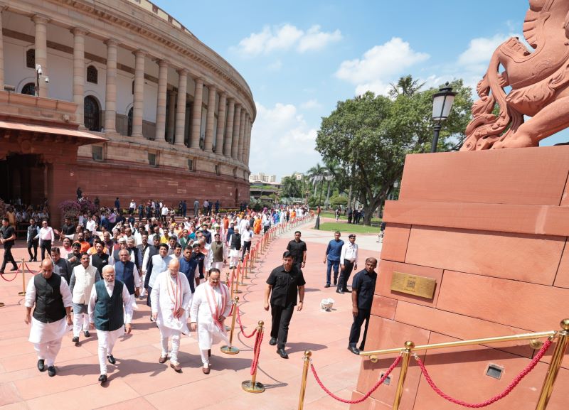 Photo courtesy: PM Modi leading MPs to new Parliament building