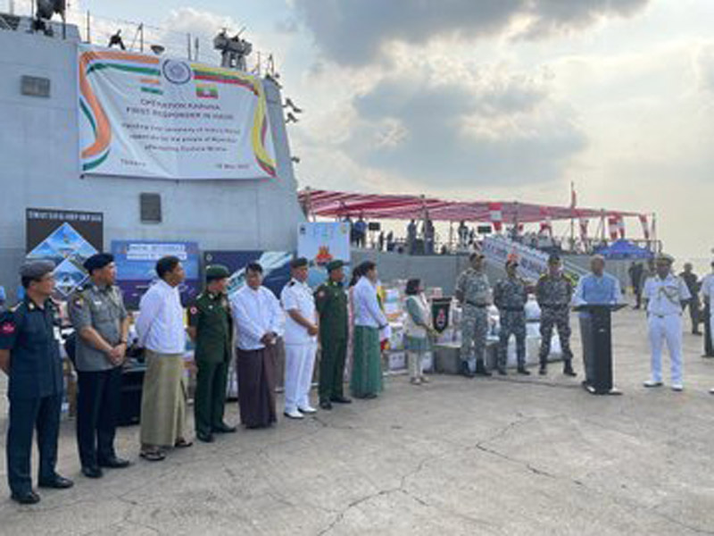 "#OperationKaruna underway. Three Indian Navy ships carrying relief material reached Yangon today. A fourth ship will be reaching tomorrow," he said.