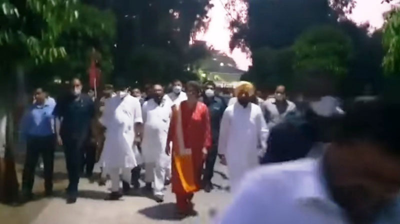 She joined the Congress team, which was cleared for a visit to meet the families of farmers.