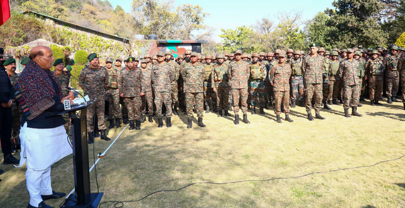Rajnath assured the troops that the Government stands with the Armed Forces and the nation will forever be indebted to the unparalleled valour and sacrifice of the soldiers.