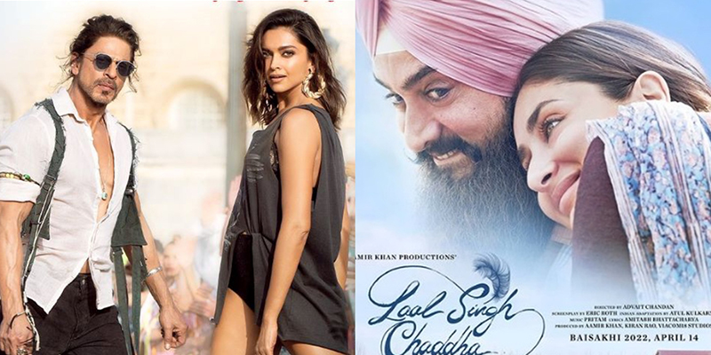 Pathaan poster (L) and Laal Singh Chaddha poster (R) | Image Credit: Twitter/SRK and Instagram/Kareena Kapoor Khan