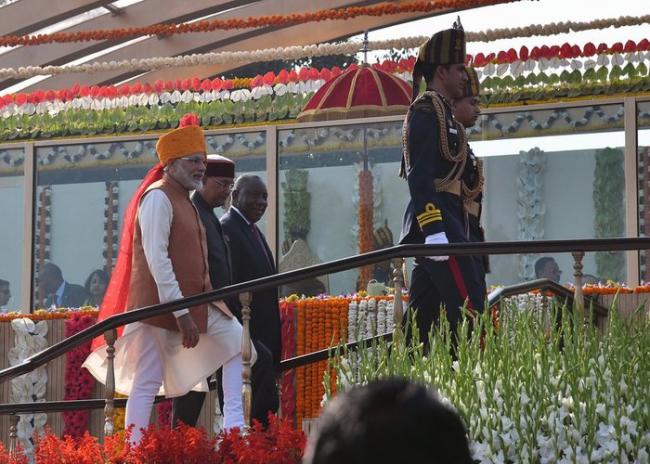South African President Cyril Ramaphosa was present at the parade, where Indian President Ram Nath Kovind, Vice President Venkaiah Naidu and Prime Minister Narendra Modi were also present.