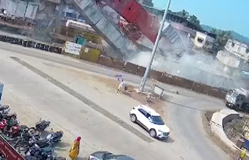 CCTV footage captured the incident, showing a visible crack in the flyover which led to its collapse.