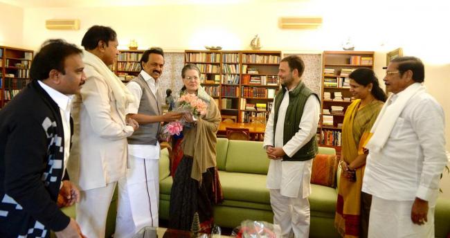 DMK president MK Stalin, M Kanimozhi and A Raja were among the opposition leaders who met Gandhi and wished her on the special date of the year.