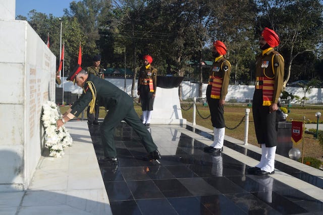 The event commenced with Lt Gen C.P. Mohanty, GOC, Trishakti Corps, laying the wreath at the War Memorial, to pay homage to the supreme sacrifice made by the valiant soldiers of the Trishakti Corps during the War.