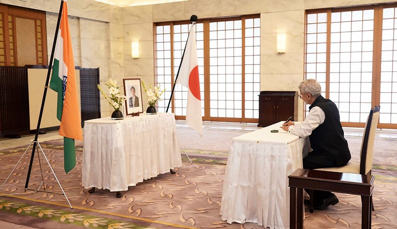 NEW DELHI, JUL 9 (UNI):- External Affairs Minister S Jaishankar during his visit to Embassy of Japan to convey his condolences to Ambassador of Japan to India Satoshi Suzuki on the assassination of former Japanese prime minister Shinzo Abe, in New Delhi on Saturday.