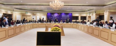 The Union Minister for Finance and Corporate Affairs, Arun Jaitley chairing the Pre-Budget Consultation with the States Finance Ministers in connection with the forthcoming Union Budget 2018-19, in New Delhi on January 18, 2018. The Minister of State for Finance, Shiv Pratap Shukla, the Minister of State for Finance and Shipping, P. Radhakrishnan, the Finance Secretary, Dr. Hasmukh Adhia, the Secretary, Department of Expenditure, Ajay Narayan Jha and the Secretary, Department of Economic Affairs, S.C. Garg are also seen.