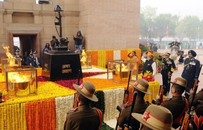 The President, Ram Nath Kovind, the Vice President, M. Venkaiah Naidu, the Prime Minister, Narendra Modi and other dignitaries attend the Sarva Dharma Prarthana Sabha, at the Samadhi of Mahatma Gandhi on the occasion of Martyr’s Day, at Rajghat, in Delhi on January 30, 2018.