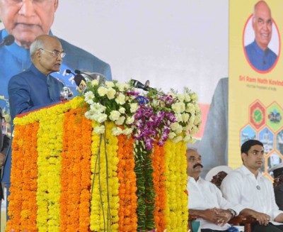 The Vice President, M. Venkaiah Naidu addressing the gathering after laying the foundation stone for the International Exhibition-cum-Convention Center and Integrated Transit Corridor Development Project, at Pragati Maidan, in New Delhi on December 22, 2017. The Union Minister for Commerce, Suresh Prabhu, the Minister of State for Consumer Affairs, Food & Public Distribution and Commerce & Industry, C.R. Chaudhary and the Commerce Secretary, Rita A. Teaotia are also seen