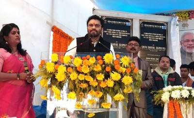 The Minister of State for Heavy Industries & Public Enterprises, Babul Supriyo addressing at the inauguration of the construction of five numbers of Foot Over Bridges (FOB)s on NH-2, at a centralized function, in Andal More, Paschim Bardhaman, West Bengal on December 27, 2017.