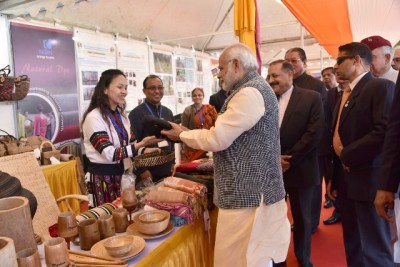 The Prime Minister, Narendra Modi walks through the exhibition of farm produce of North-East and display of relevant farm and non-farm technologies, at Assam Rifles Cant, Aizawl on December 16, 2017. The Minister of State for Development of North Eastern Region (I/C), Prime Minister’s Office, Personnel, Public Grievances & Pensions, Atomic Energy and Space, Dr. Jitendra Singh is also seen.