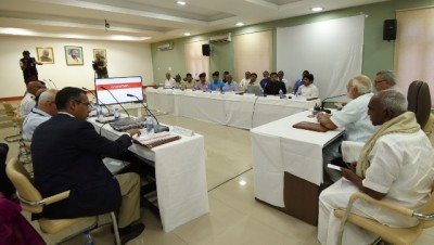 The Union Minister for Finance and Corporate Affairs, Arun Jaitley chairing the Pre-Budget Consultative meeting with the (Banks & Financial Institutions) groups in connection with the forthcoming Union Budget 2018-19, in New Delhi on December 15, 2017. The Minister of State for Finance and Shipping, P. Radhakrishnan, the Minister of State for Finance, Shiv Pratap Shukla, the Finance Secretary, Dr. Hasmukh Adhia and other dignitaries are also seen.