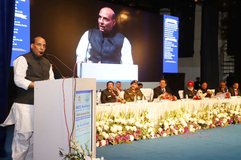 The Union Home Minister, Rajnath Singh addressing at the inauguration of the 43rd Annual Day function of MES Builders Association of India, in New Delhi on January 12, 2018.