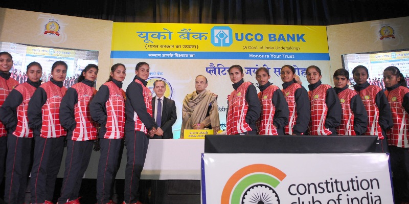 The Union Minister for Finance and Corporate Affairs, Arun Jaitley addressing at the Platinum Jubilee celebrations (75th Anniversary of Foundation Day) of UCO Bank, in New Delhi on January 06, 2018