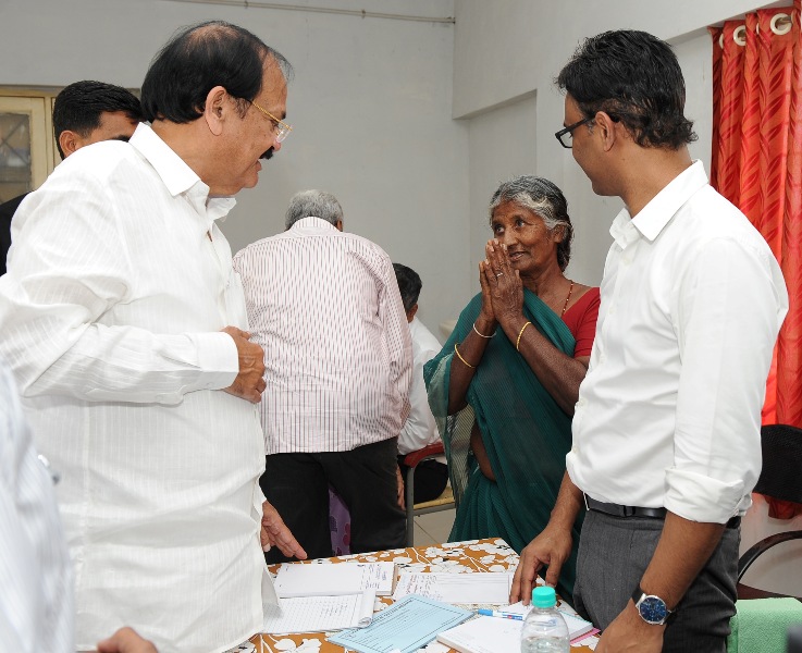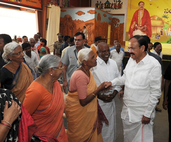 The Vice President, M. Venkaiah Naidu meeting and greeting people, at Swarna Bharat Trust, in Nellore, Andhra Pradesh on January 13, 2018.