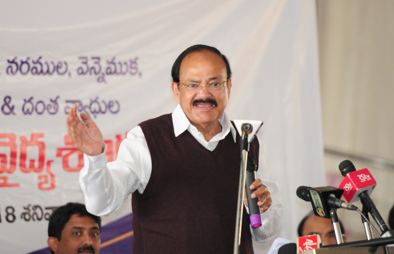 The Vice President, M. Venkaiah Naidu addressing the gathering after inaugurating a medical camp, at Swarna Bharat Trust, in Nellore, Andhra Pradesh on January 13, 2018.