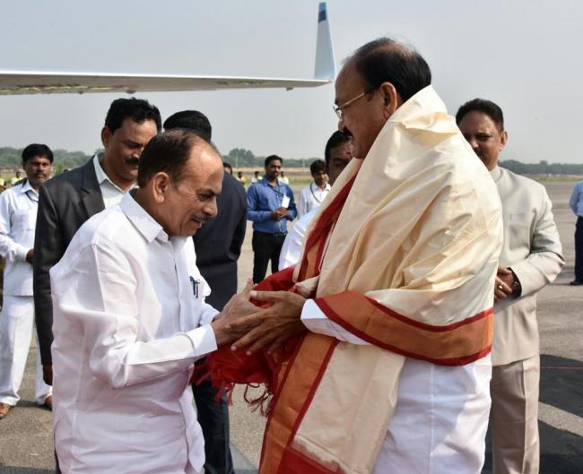 The Vice President, M. Venkaiah Naidu being bid farewell by the Deputy Chief Minister of Telangana, Mohammad Mahmood Ali, on his departure, in Hyderabad on October 28, 2017.