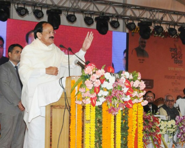The Vice President, M. Venkaiah Naidu addressing the gathering at the Uttar Pradesh Diwas, in Lucknow, Uttar Pradesh on January 24, 2018.