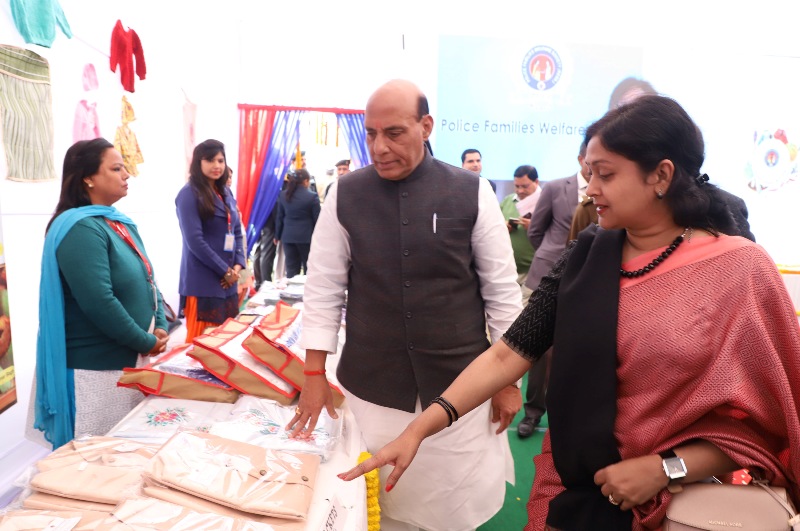 The Union Home Minister, Rajnath Singh visiting the stalls put up by the Police Families Welfare Society, Delhi during the 71st Raising Day Parade of Delhi Police, in New Delhi on February 16, 2018.