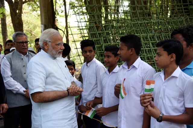The Prime Minister, Narendra Modi interacting with the School Kids, in Kavaratti, Lakshadweep on December 19, 2017.