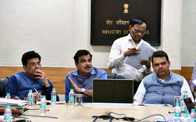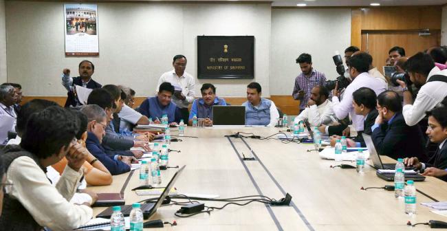 The Chief Minister of Maharashtra, Devendra Fadnavis meeting the Union Minister for Road Transport & Highways, Shipping and Water Resources, River Development & Ganga Rejuvenation, Nitin Gadkari to discuss issues related to Shipping and National Highways, in New Delhi on November 14, 2017. The Union Minister for Railways and Coal, Piyush Goyal is also seen.