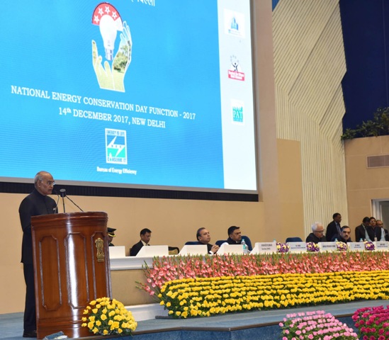 The President, Ram Nath Kovind addressing at the National Energy Conservation Day function, in New Delhi on December 14, 2017.