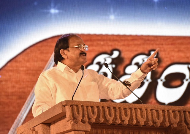 The Vice President, M. Venkaiah Naidu addressing the World Telugu Conference, in Hyderabad on December 15, 2017.