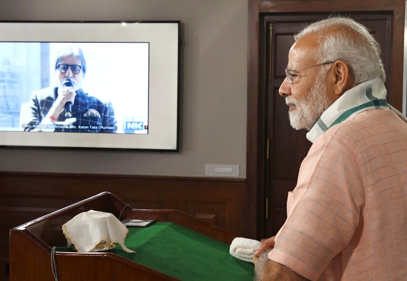 The Prime Minister, Narendra Modi interacting with a cross-section of people from across the country, via video conference, on the occasion of the “Swachhata Hi Sewa†Abhiyan, in New Delhi on September 15, 2018.